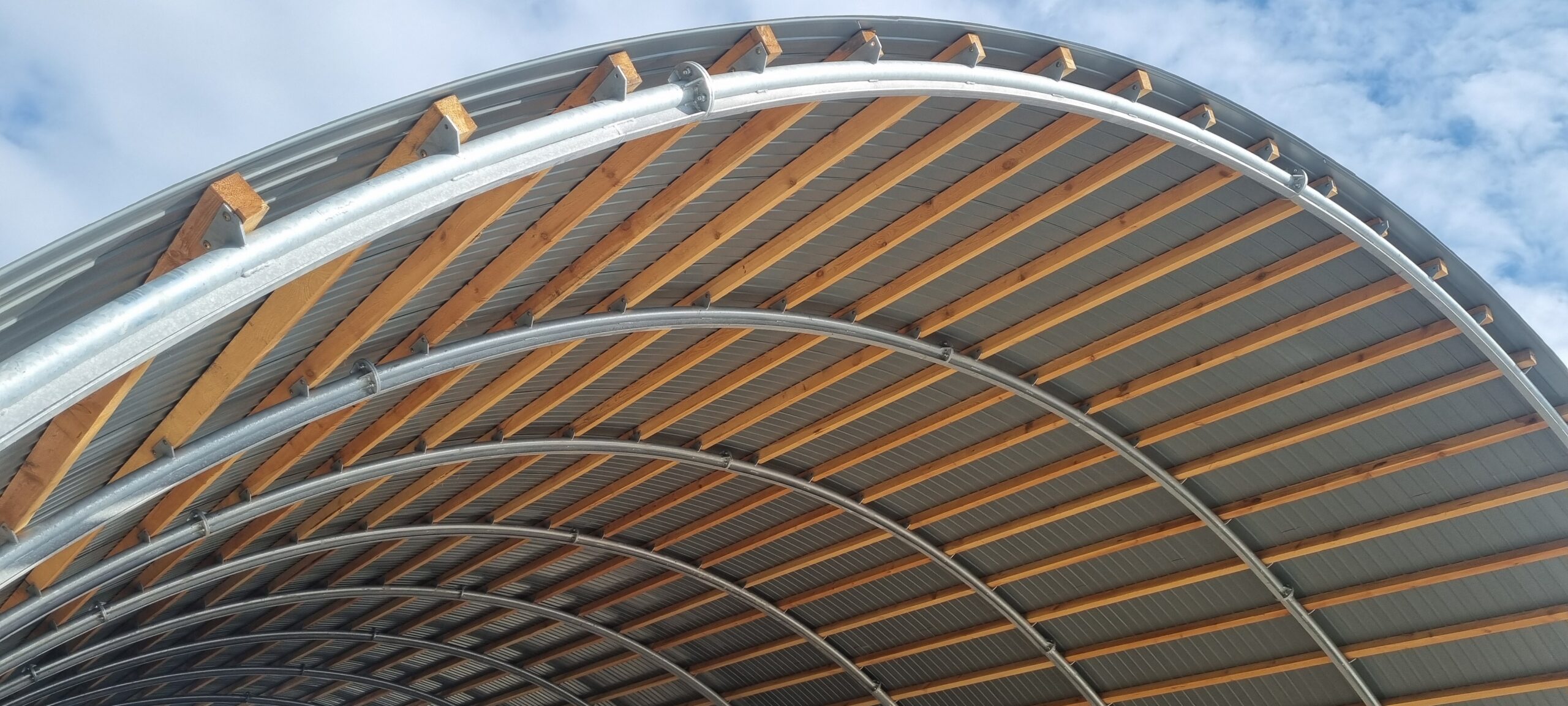 Konstrukcja przygotowana pod drewniane łaty o przekroju 7x10cm ( 35 sztuk ), montowane co 60cm skręcane na śruby ciesielskie 8×80, możliwość zastosowania łat stalowych ocynkowanych.